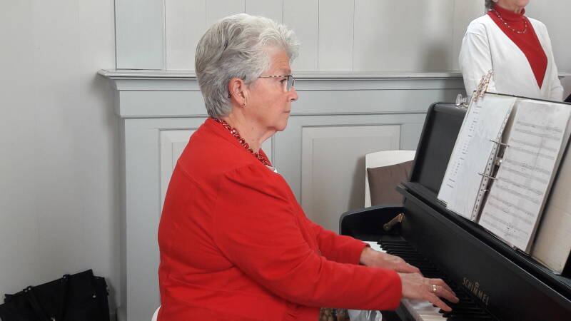 Zij begeleidt ook al 15 jaar het koor op fantastische wijze en zit elke week met een blije glimlach achter de piano.